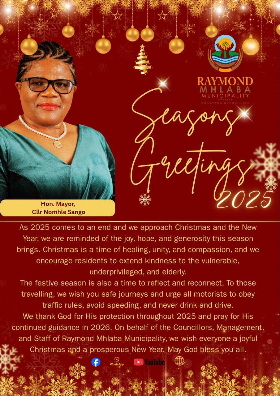 Council meeting of the Raymond Mhlaba Municipality will be held on Tuesday, 9 December 2025 at 10h00 in the New Council Chamber in Alice.