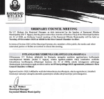Council meeting of the Raymond Mhlaba Municipality will be held on Tuesday, 31 March 2026 at 10h00 in the New Council Chamber in Alice.