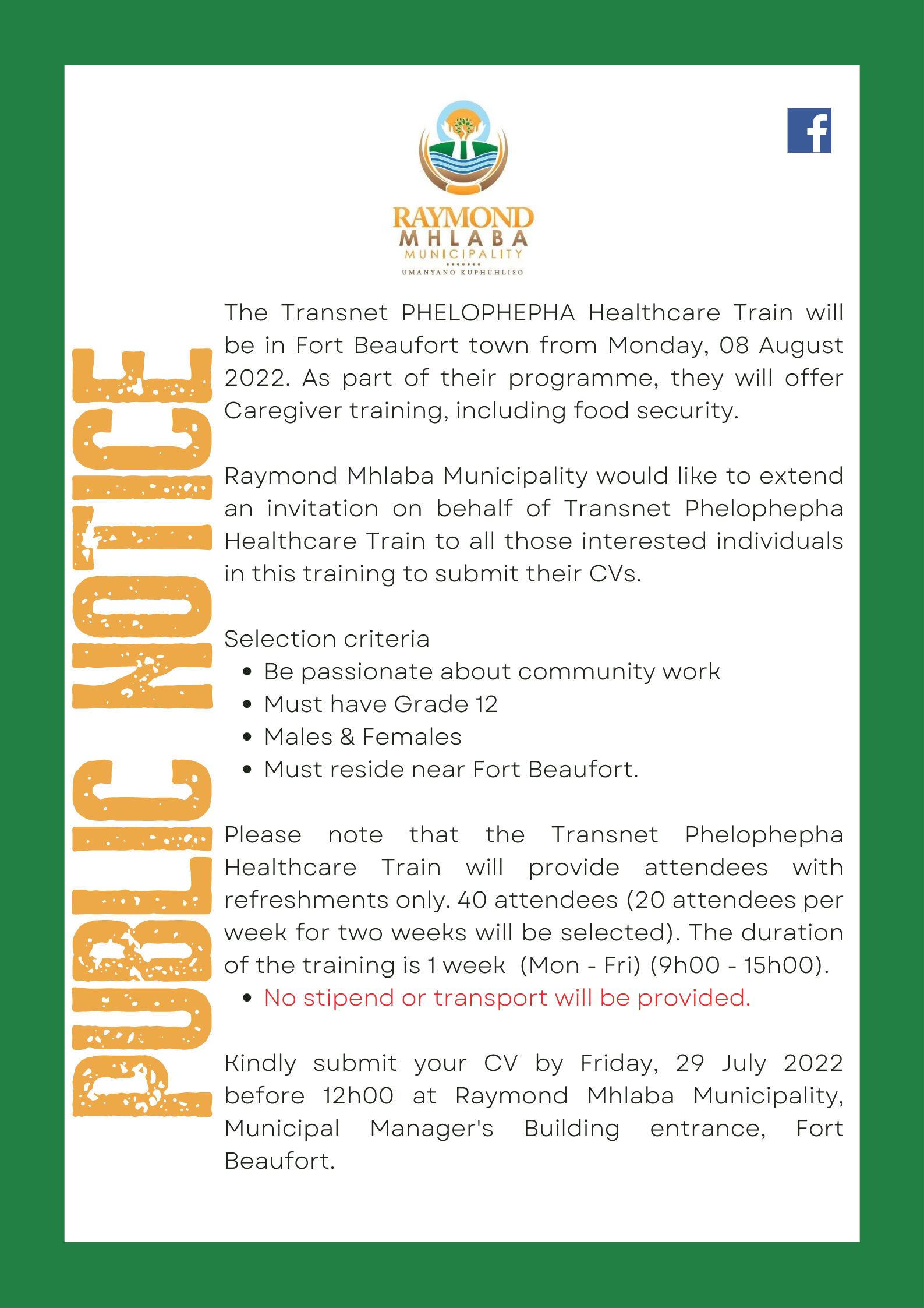 PHELOPHEPHA HEALTHCARE TRAIN CAREGIVER 8 AUGUST 2022
