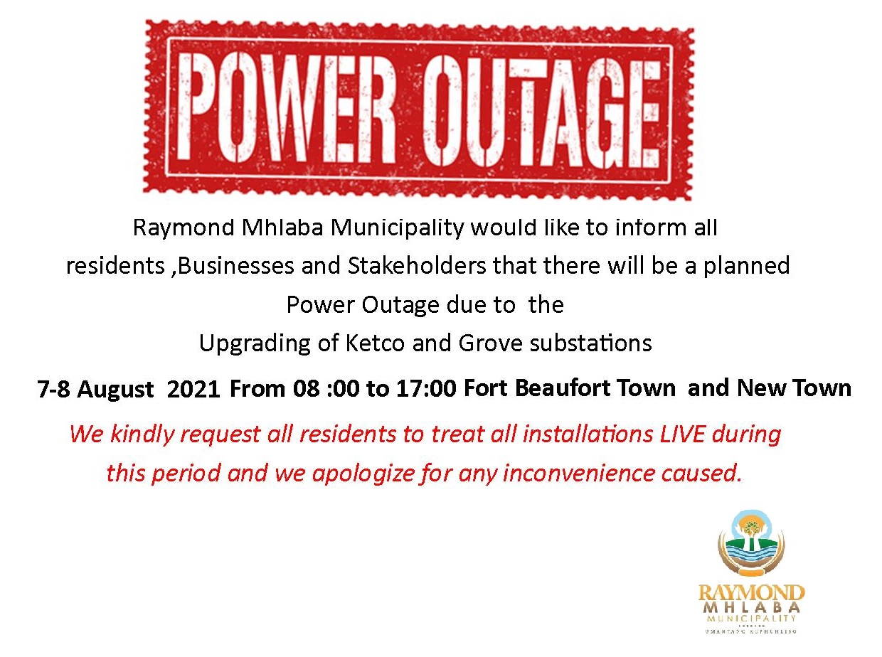 Raymond Mhlaba Municipality would like to inform all Residents, Businesses and Stakeholders that there will be a planned Power Outage due to the Upgrading of Ketco and Grove substations.